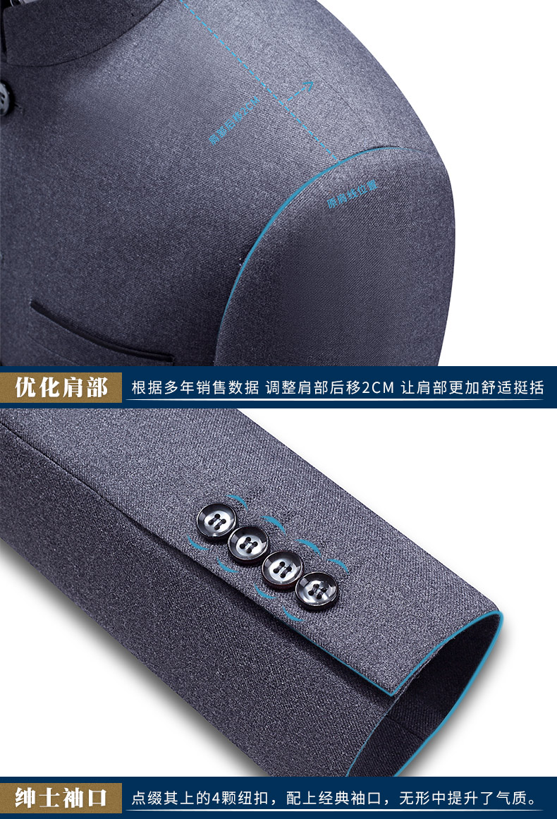 1、本版型为修身款,可根据实际情况进行修改;包括但不限于:修身、标准、宽松。合身和舒适才是一套中山装的根本。