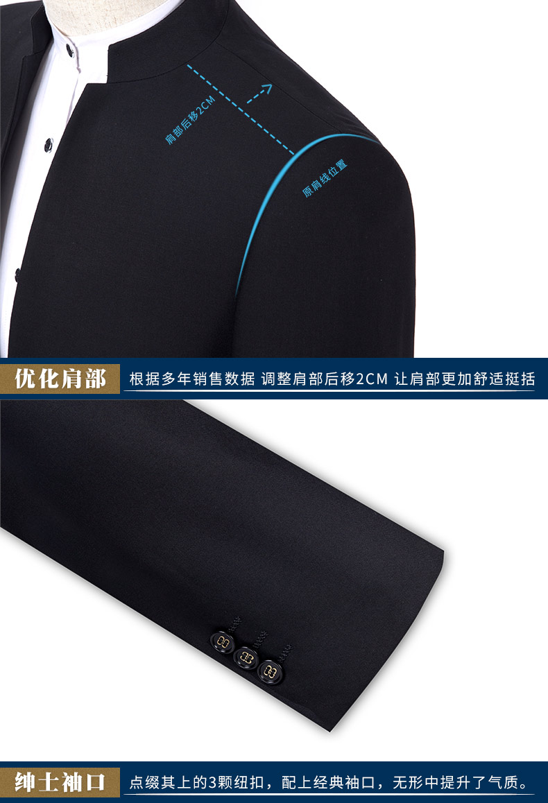 1、本版型为修身款,可根据实际情况进行修改;包括但不限于:修身、标准、宽松。合身和舒适才是一套中山装的根本。