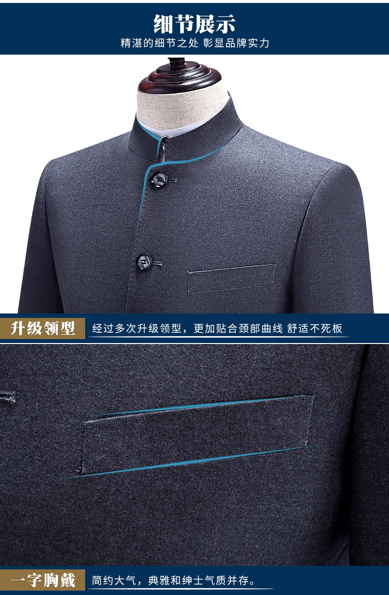 1、本版型为修身款,可根据实际情况进行修改;包括但不限于:修身、标准、宽松。合身和舒适才是一套中山装的根本。