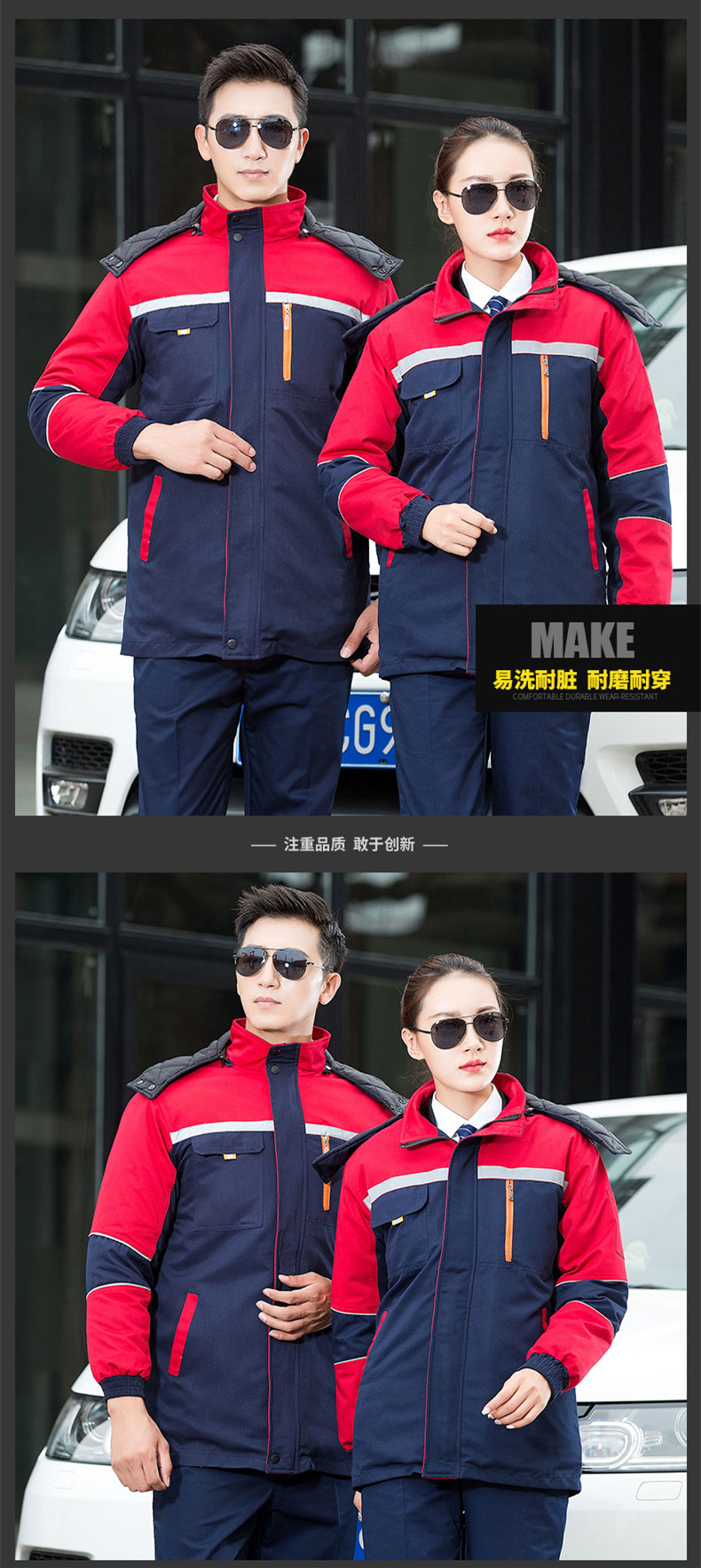 3、一套完整的工程服包括:外套、裤子、鞋子、建议根据实际情况进行选择。