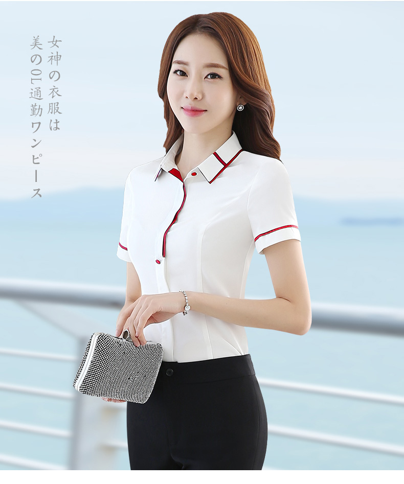 女士修身短袖衬衫H-11002